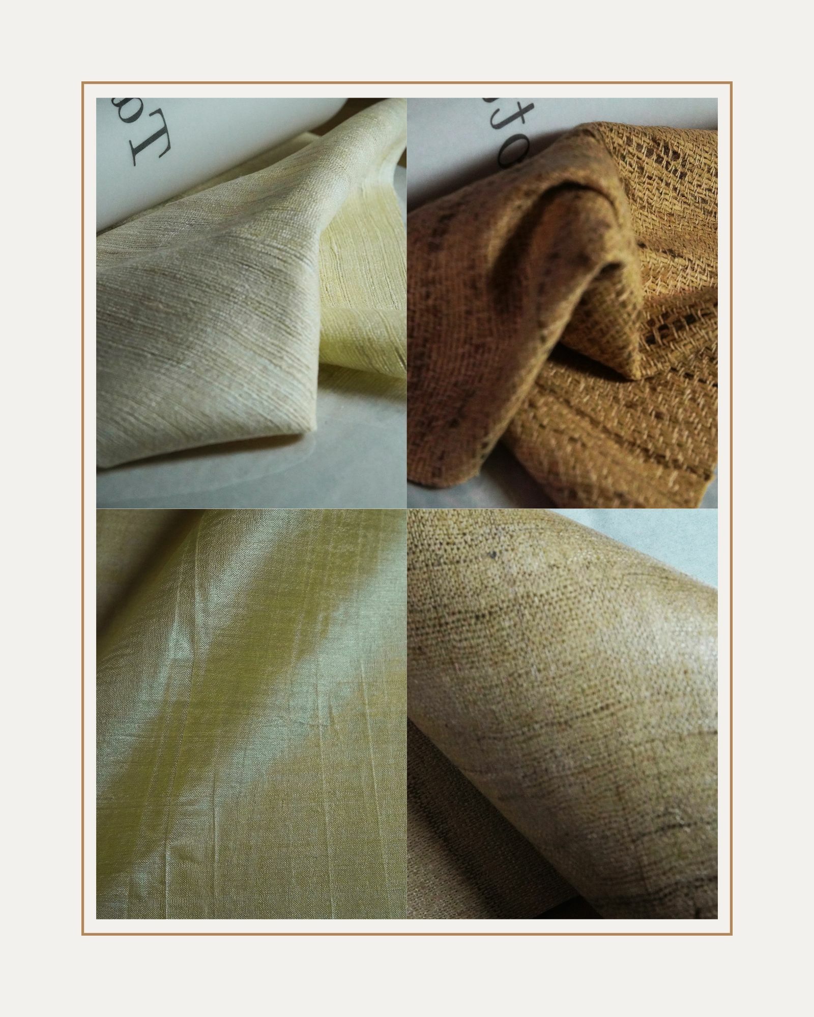 Our handmade silk, crafted from the finest Tussar and Mulberry fibers, embodies luxury and tradition. With its rich texture, natural sheen, and breathable feel, this exquisite fabric is perfect for high-end fashion, timeless apparel, and elegant home décor. Sustainably produced by skilled artisans, it offers a perfect blend of heritage and sophistication for the global market.